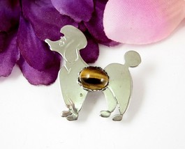 TIGER'S EYE French POODLE PIN Vintage Brooch Standard Silvertone Fancy Dog added to cart.