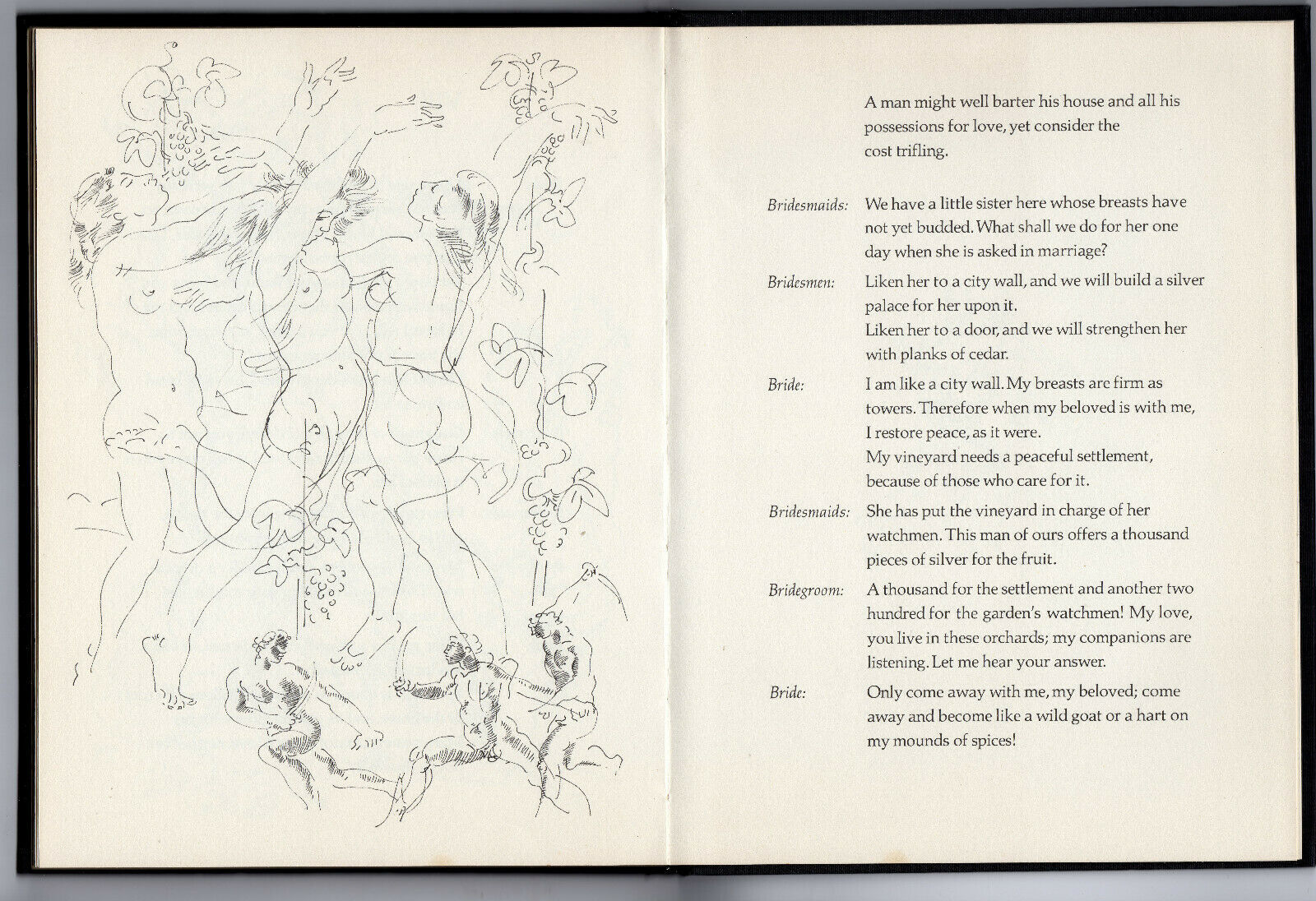 Graves translates these Canticles, from the earliest manuscript, into English, using the traditional form of the Hebrew pastoral drama performed at marriage festivals.