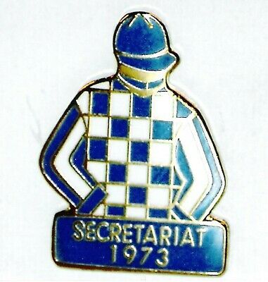 This is a 1" metal lapel pin featuring the Blue White checkered Jockey Silks and striped sleeves of the Meadow Stable and worn by the 1973 Kentucky Derby winner and ninth Triple Crown winner, SECRETARIAT. FREE packaging and First Class Postage shipping in the U.S.A. International Postage cost will be determined by the Country of the Buyer. If you buy more than one item please pay for all the items with one combined PayPal payment rather than paying for each item individually.