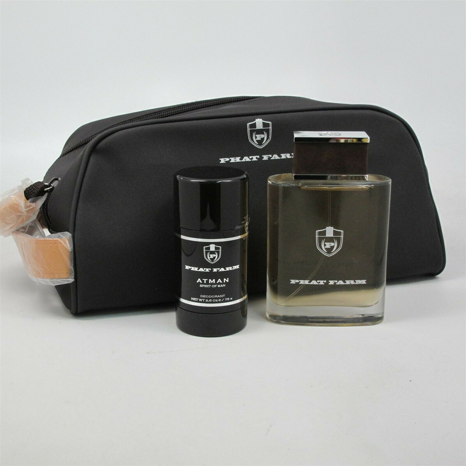 ATMAN Sprit of Man by PHAT FARM 3 Pc Set: 3.4 oz EDT Spray, Deo & Toiletry Bag