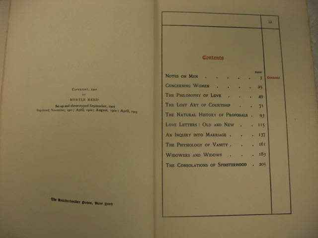 The Spinster Book: written by Myrtle Reed, C. 1901, printed 1903, by G. P. Putna