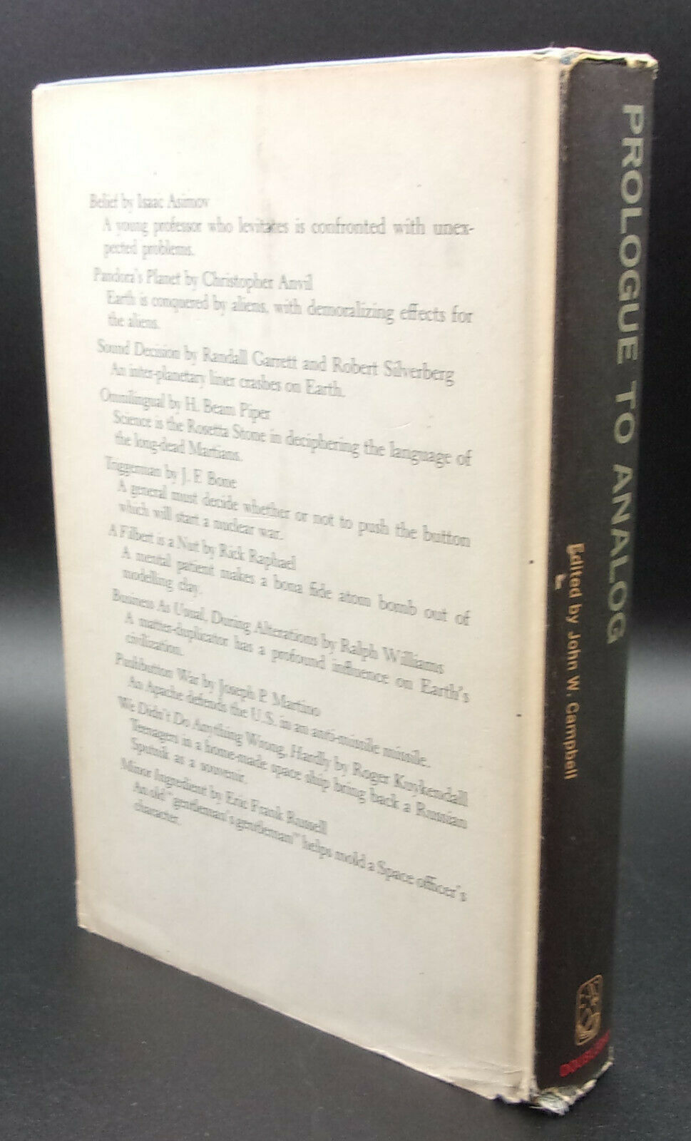 Edited by John Campbell PROLOGUE TO ANALOG First edition 1962 SF Anthology HC dj