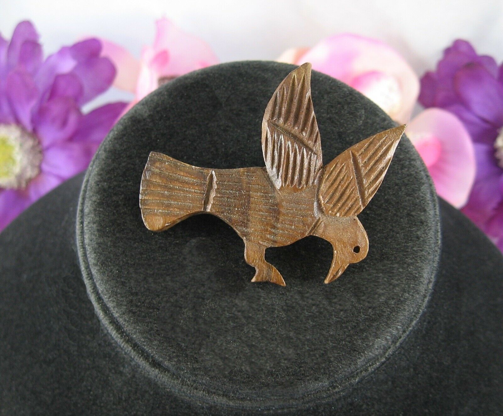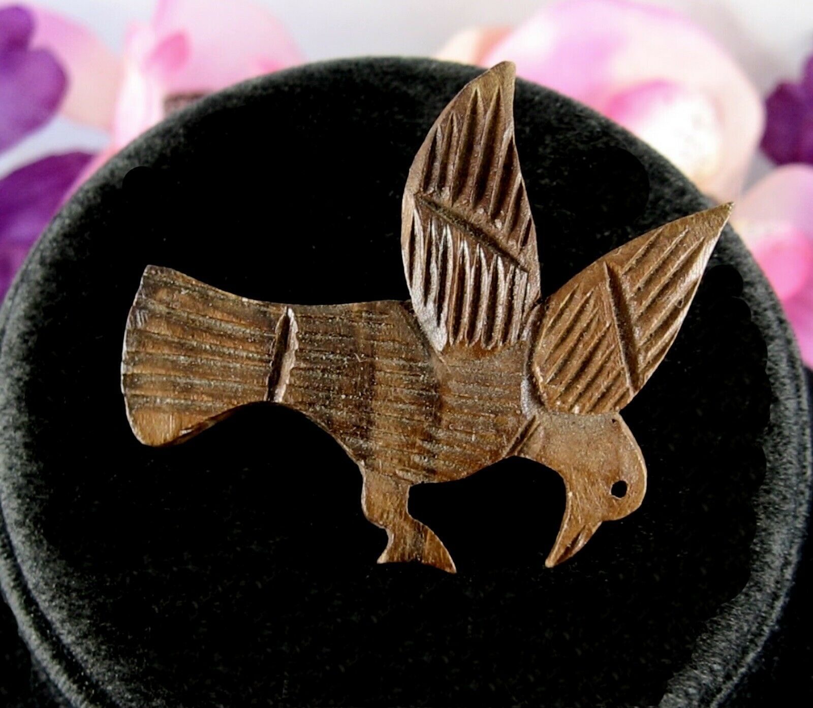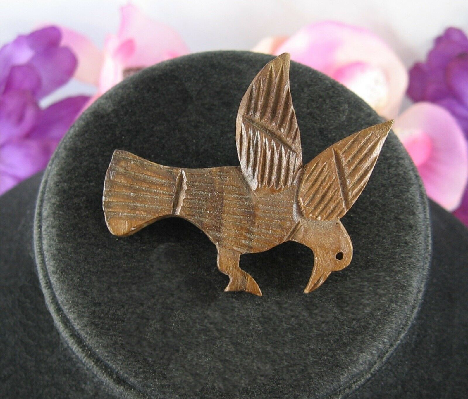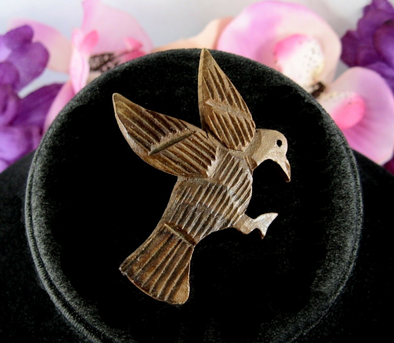 Wood FLYING BIRD DOVE PIN Vintage Hand Carved Brooch Wooden Handcrafted FLIGHT