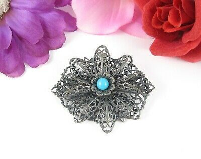 Lacy Pin Vintage Dark Silvertone Filigree and 49 similar items