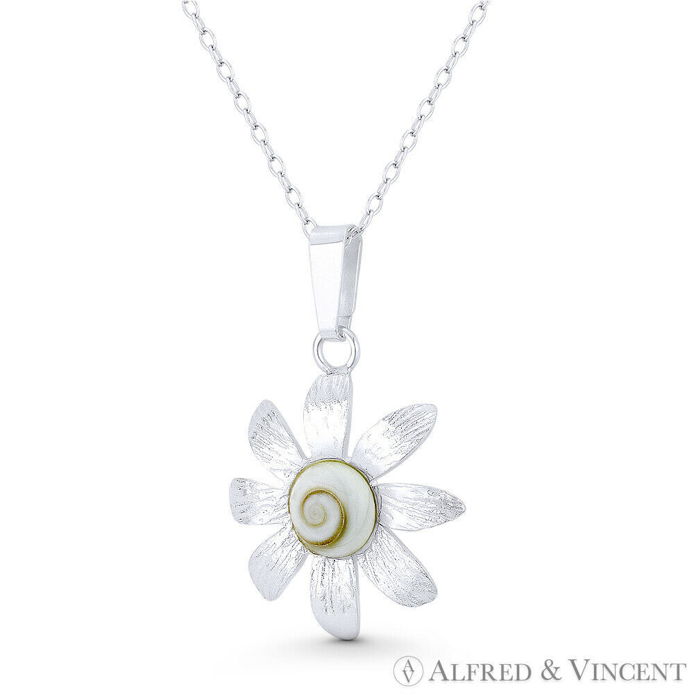 8-Petal Daisy Flower Charm Faux Seashell 28x19mm Pendant in .925 Sterling Silver