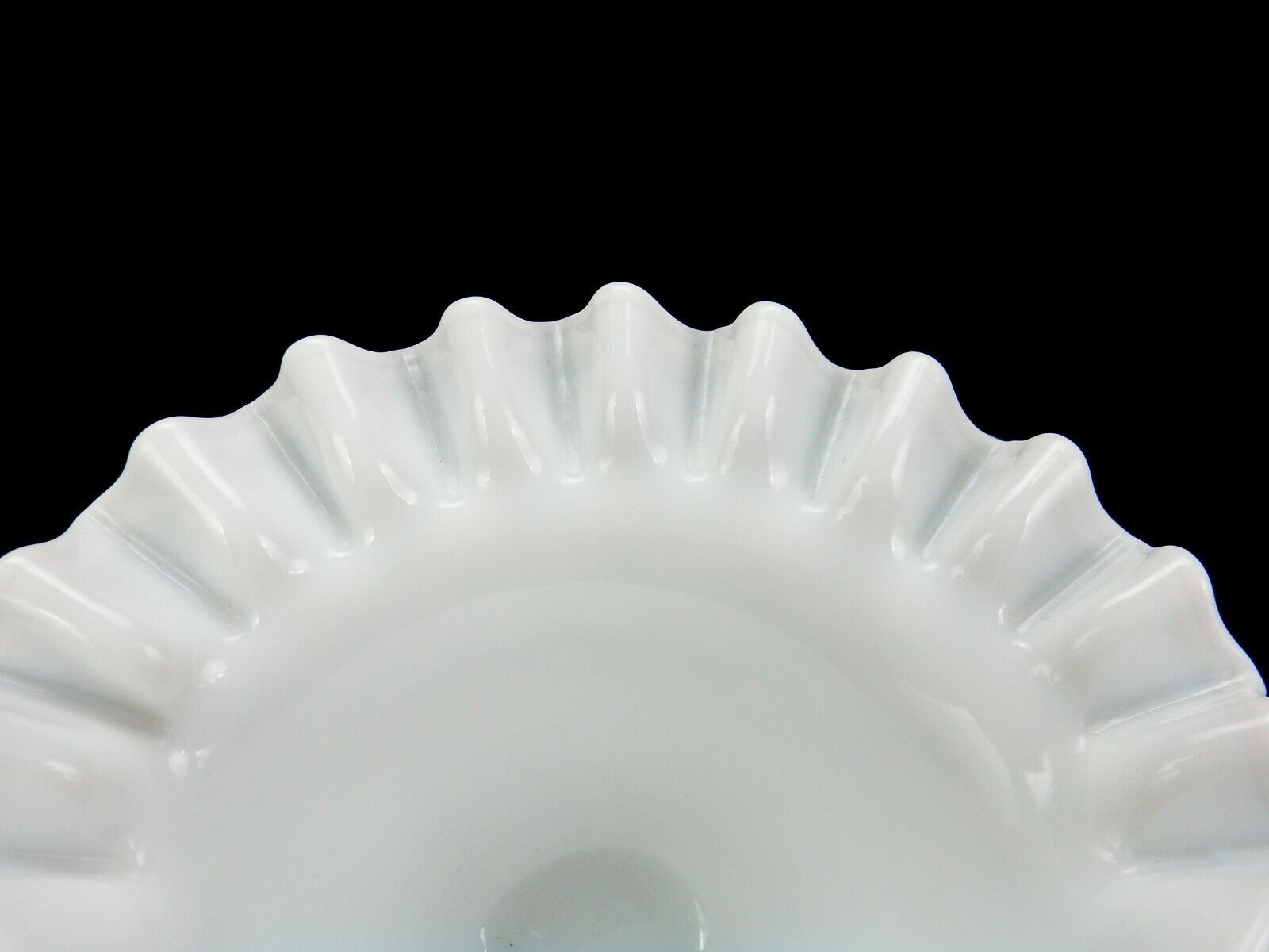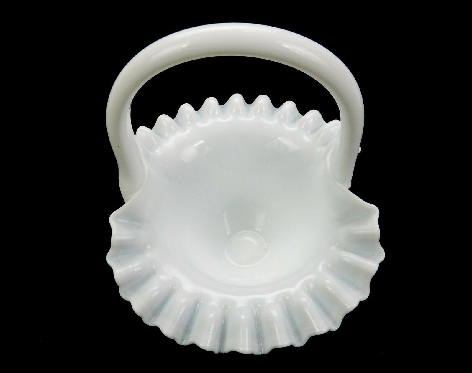 Fenton Milk Glass Basket, Hobnail Surface, Smooth Handle, Ruffled Rim, Vintage