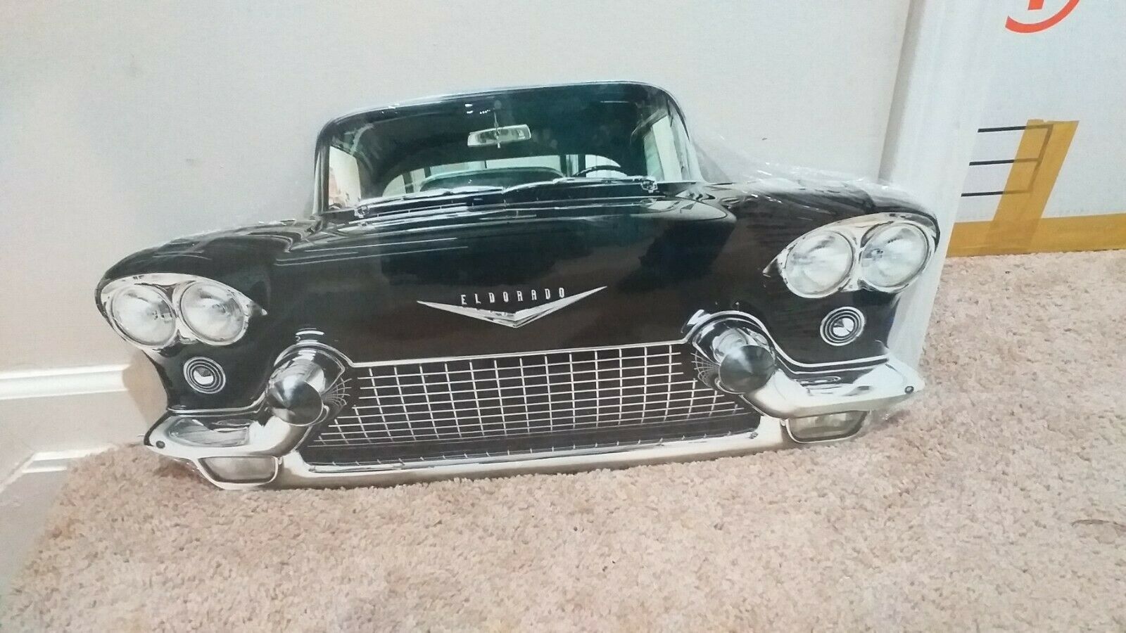 New Sealed huge 25" Front View sweet black EL DORADO cadillac Caddy full front end with hood ornament 1950s grill hang up display decor steel metal sign