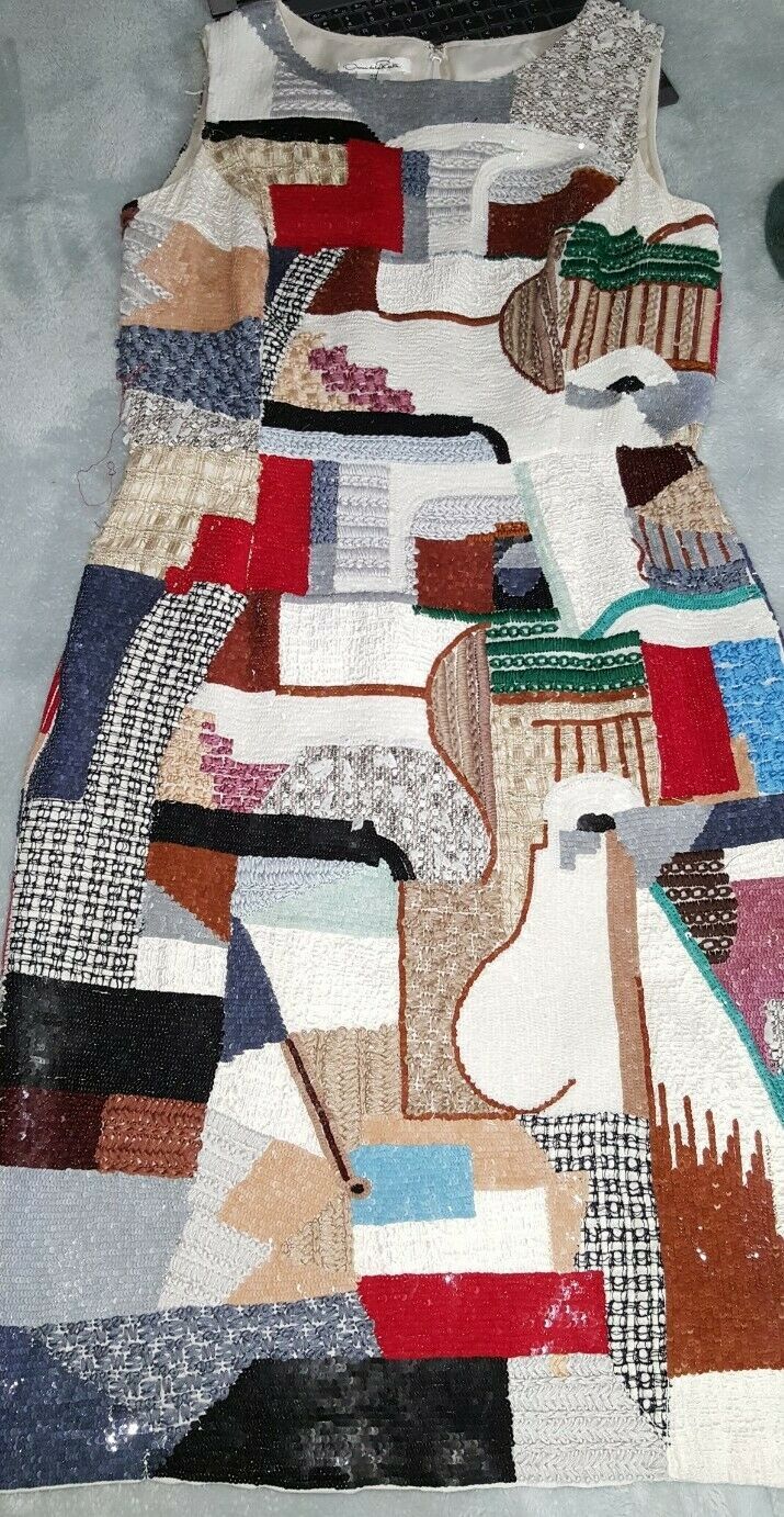 $5,200 OSCAR DE LA RENTA STUNNING PICASSO ART EXCL EMB SILK SEQUIN RUNW DRESS US 6 OR 10