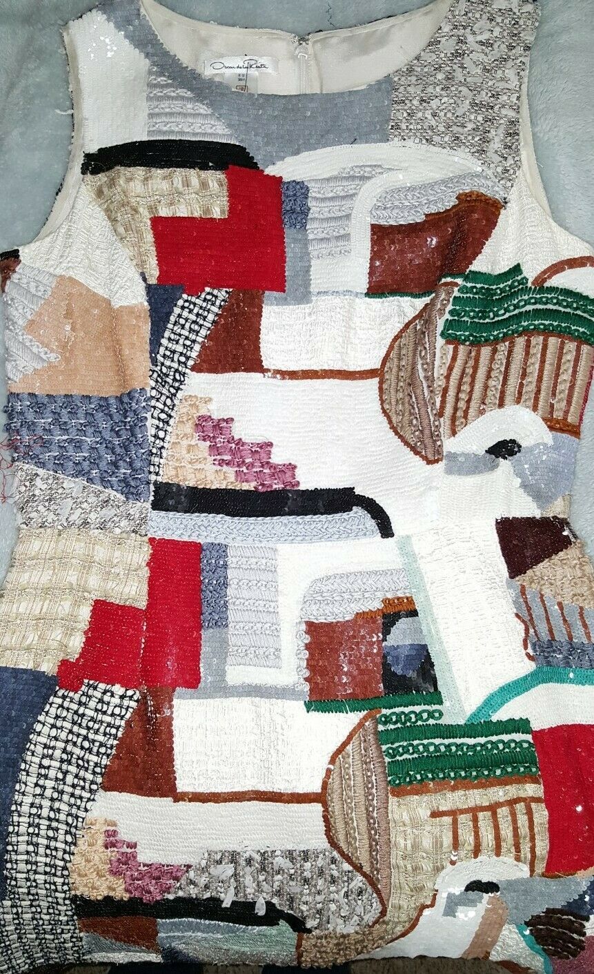 $5,200 OSCAR DE LA RENTA PICASSO ART EXCL EMB SILK SEQUIN RUNW DRESS US 6 OR 10