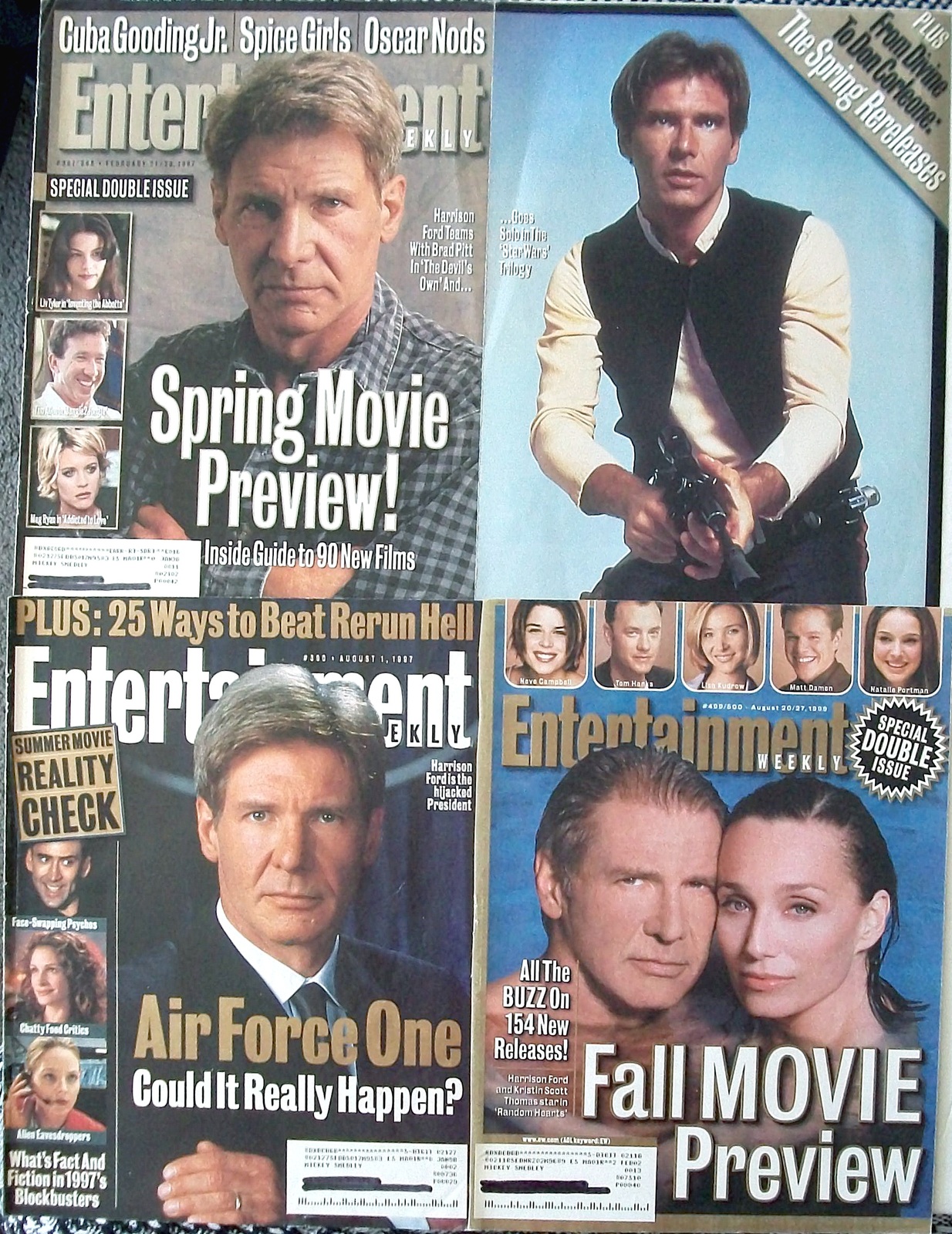 HARRISON FORD ~ 9 Color, B&W Articles, Pin-Up, Posters frm 1983-1999 ~ Clippings