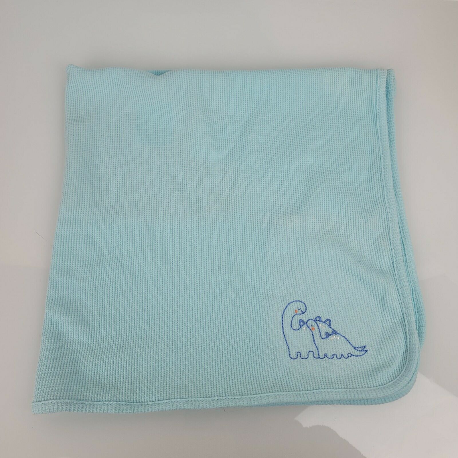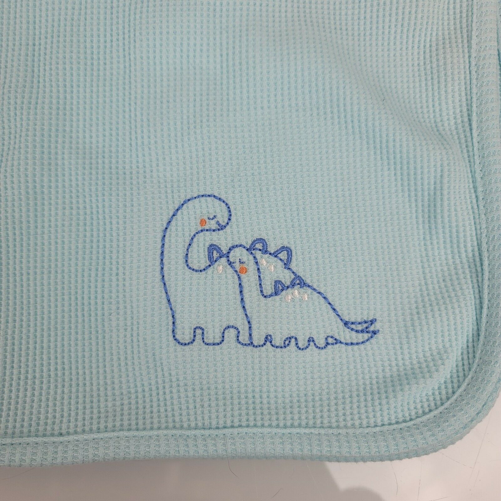 Parents Choice Thermal Dinosaur Dino Blanket Cotton Waffle Weave Aqua Blue