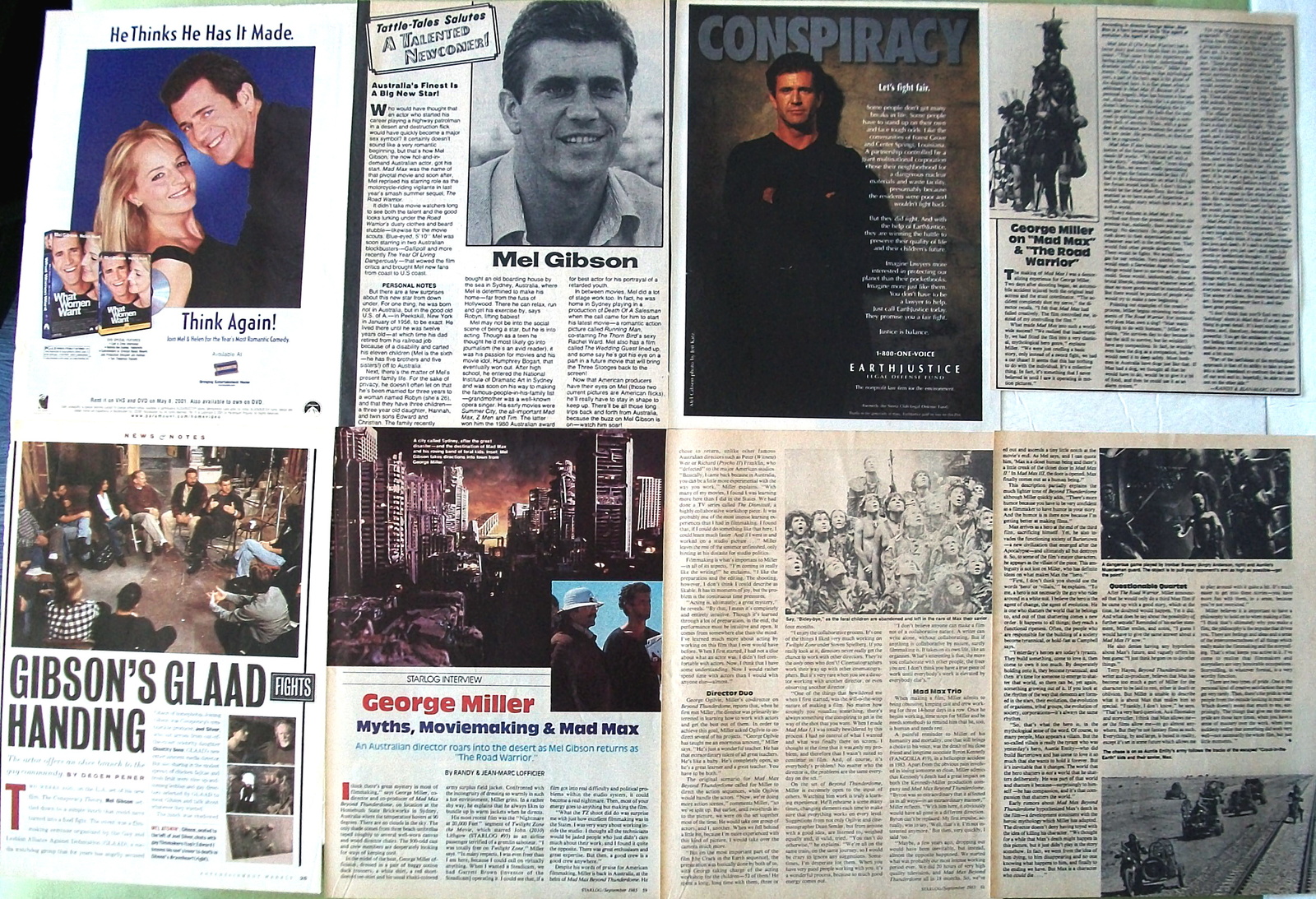MEL GIBSON ~ 22 Color and B&W Vintage CLIPPINGS, Articles, Adverts 1983-2001