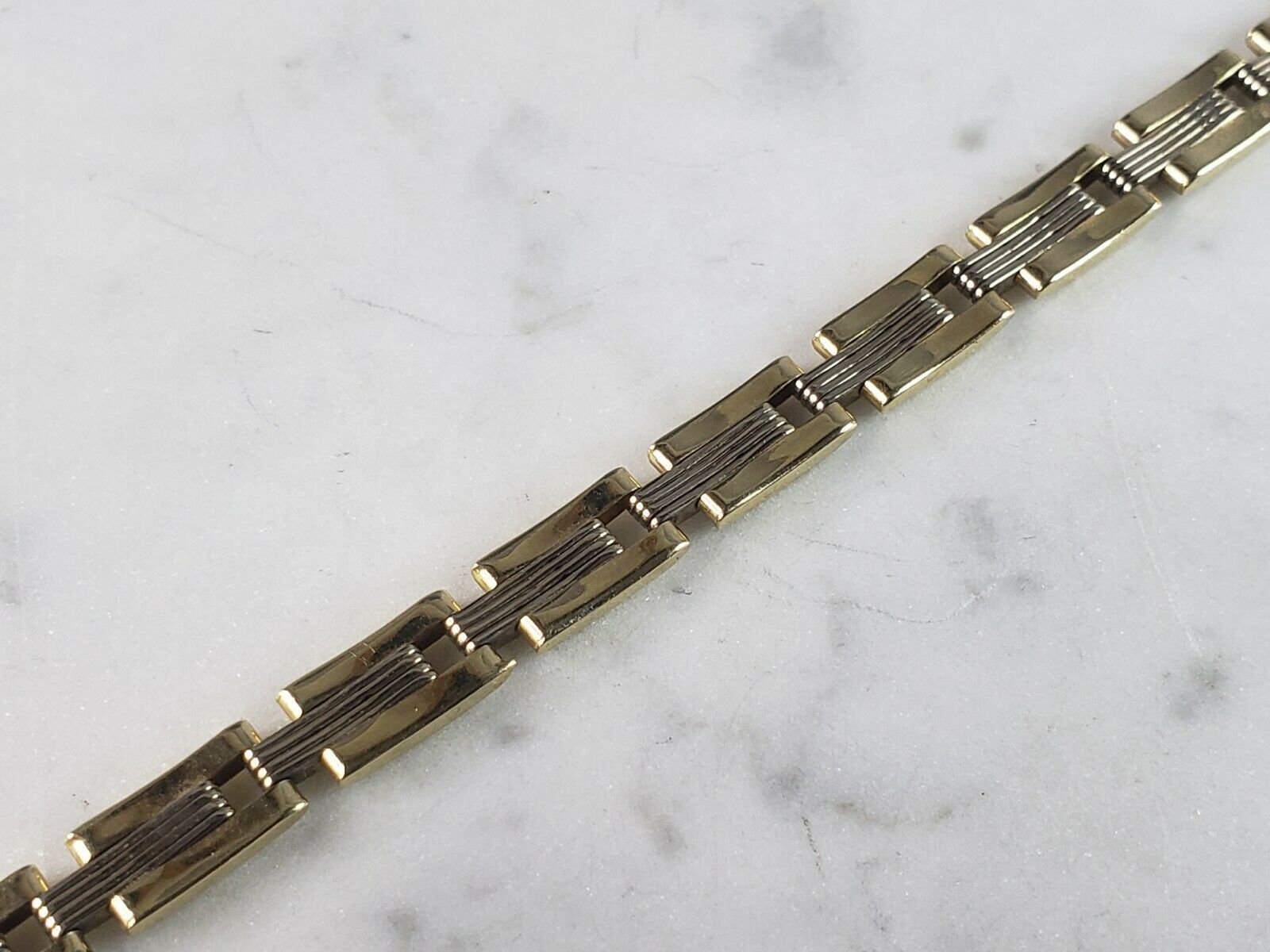Mens Vintage Estate 14K Yellow & White Gold Chain Link Bracelet 18.3g E3275