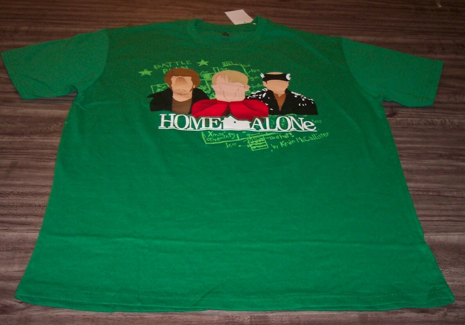 This is a HOME ALONE KEVIN and WET BANDITS Harry and Marv CHRISTMAS Movie T-shirt. It is a size XL and it is NEW with the tag. It is 23 inches from armpit to armpit and 29 inches in length. Officially Licensed. Combine auctions to save on shipping. D3AG