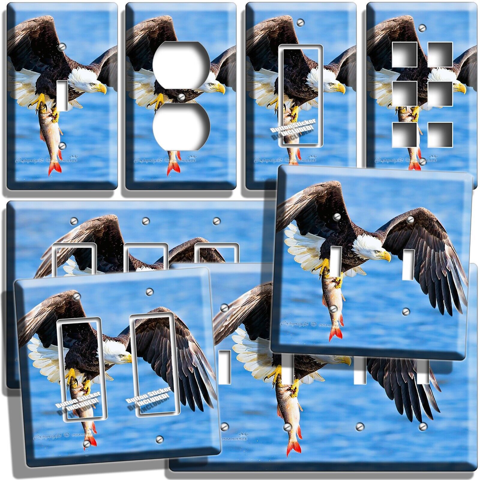 AMERICAN BALD EAGLE FISHING SALMON LIGHT SWITCH OUTLET WALL PLATE ROOM ART DECOR