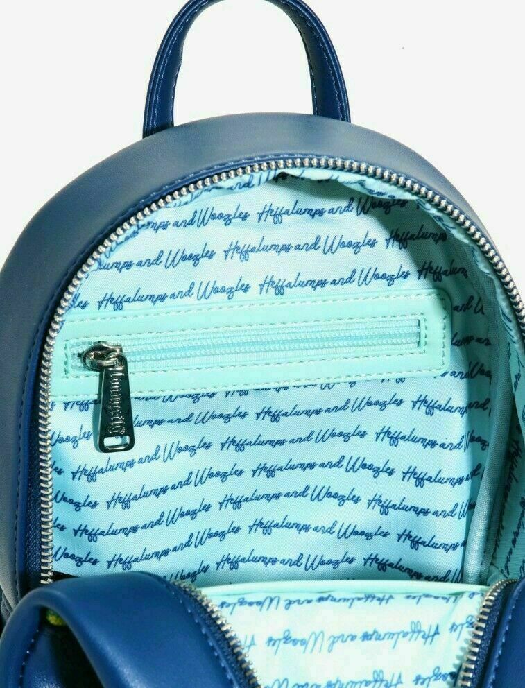 We followed the Heffalump and Woozle footprints and found this faux leather mini backpack by Loungefly! They must've been using it to store all the stolen honey. Inspired by Pooh's nightmare from Disney's The Many Adventures of Winnie the Pooh, this backpack features die-cut hot air balloons on the front, an embroidered "Heffalumps and Woozles" text and printed graphic on the back, matching interior lining with an allover text print, interior drop and zip pockets, a brand badge, two side pockets, silver tone hardware, and plaid adjustable straps.