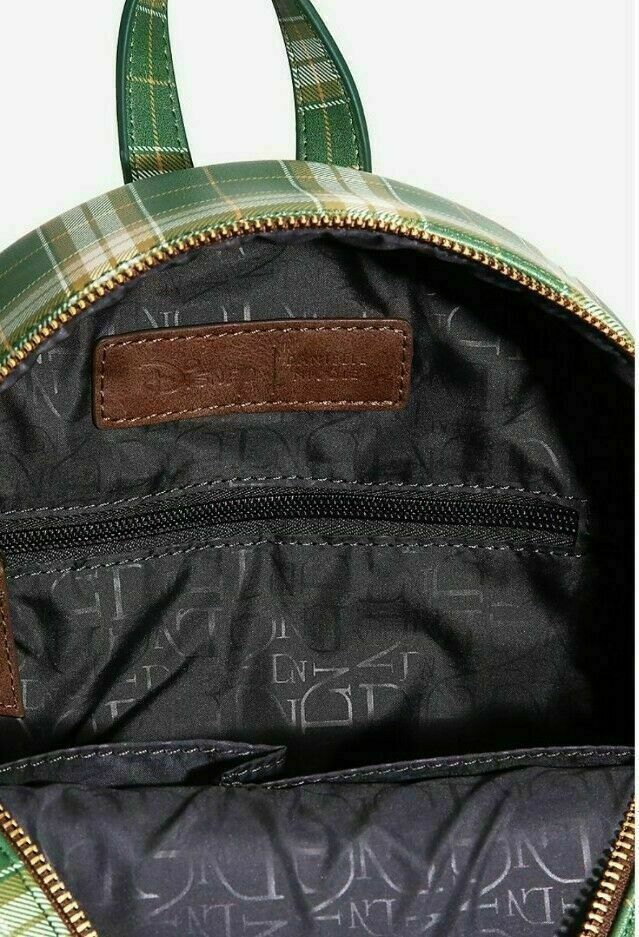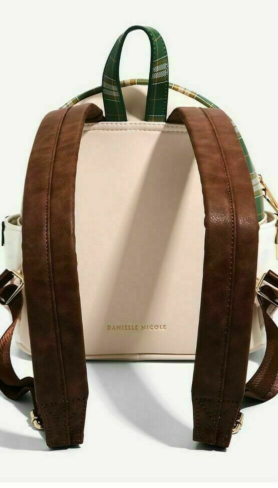 Carry your hunny jar and all of your necessities for your trek through the Hundred Acre Wood with this mini backpack from Danielle Nicole! Featuring a design inspired by Owl's House, the figural door on the front can be opened to reveal Owl, coming to greet Pooh for a day of fun! Also features figural leaves, a plaid pattern on the top canvas and handle, designs of Tigger, Piglet, and Eeyore on the side pockets, adjustable shoulder straps, an interior lettering pattern, and gold-toned hardware.