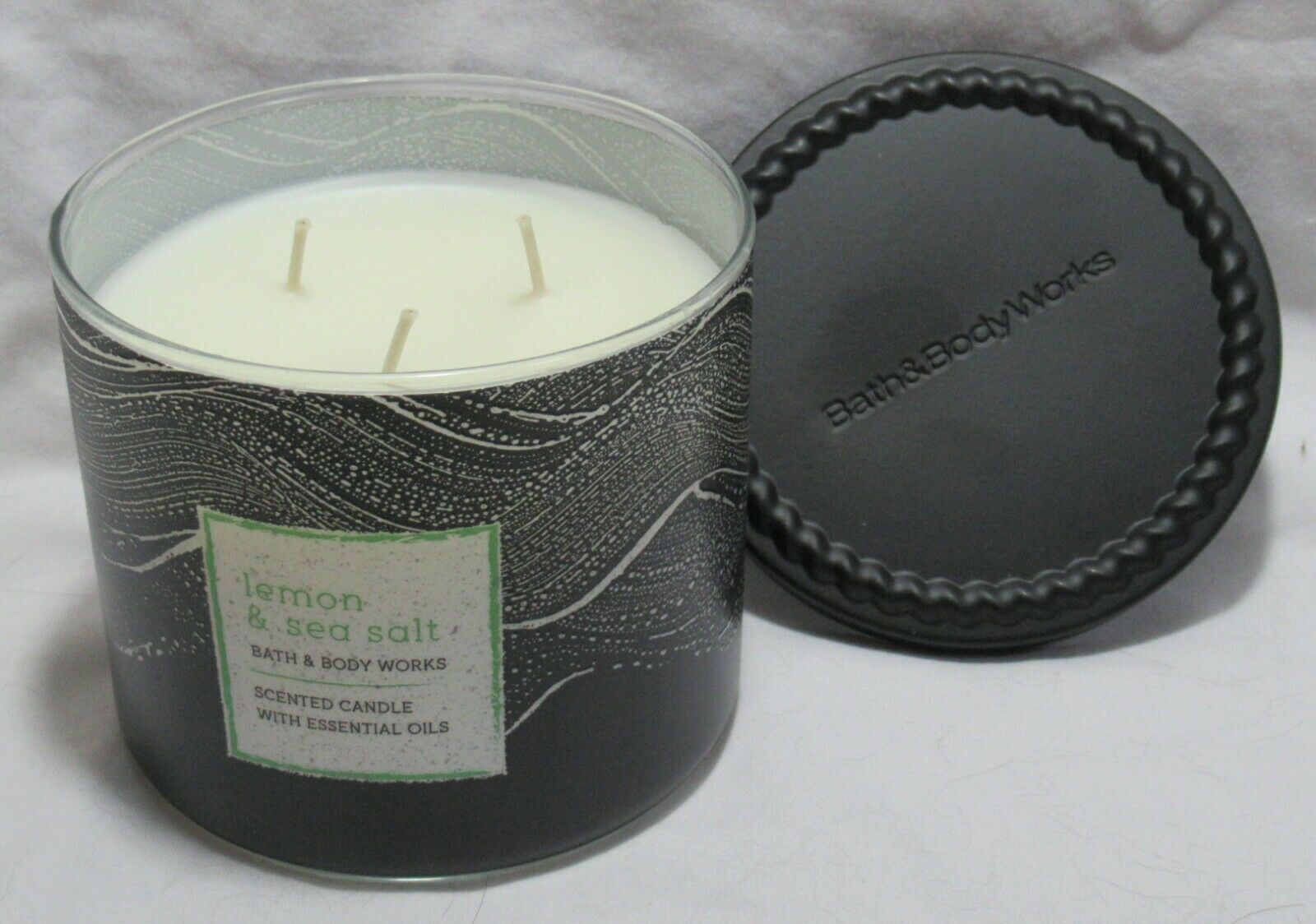 Bath & Body Works 3-wick Scented Candle Lot Set of 2 LEMON & SEA SALT essen oils