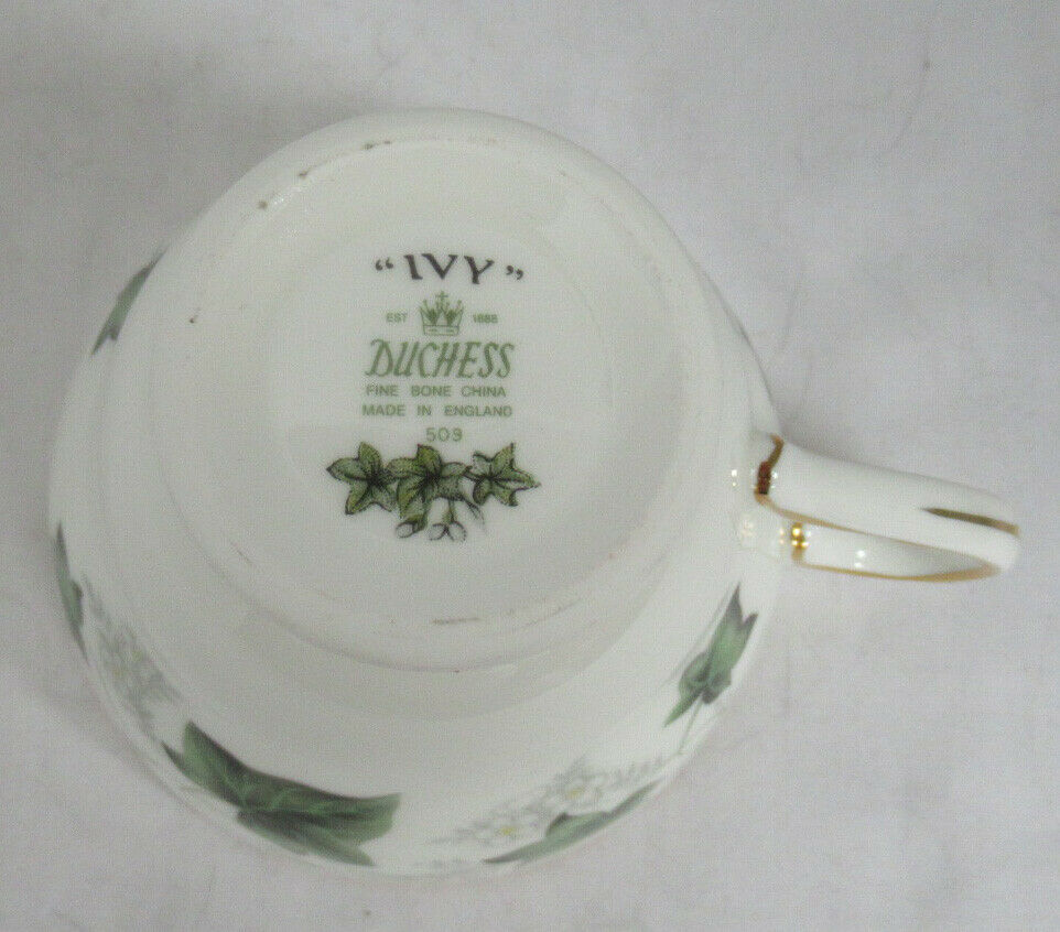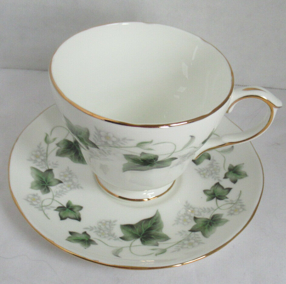 Duchess Fine English Bone China Teacup Tea Cup Saucer Green IVY flowers scallop