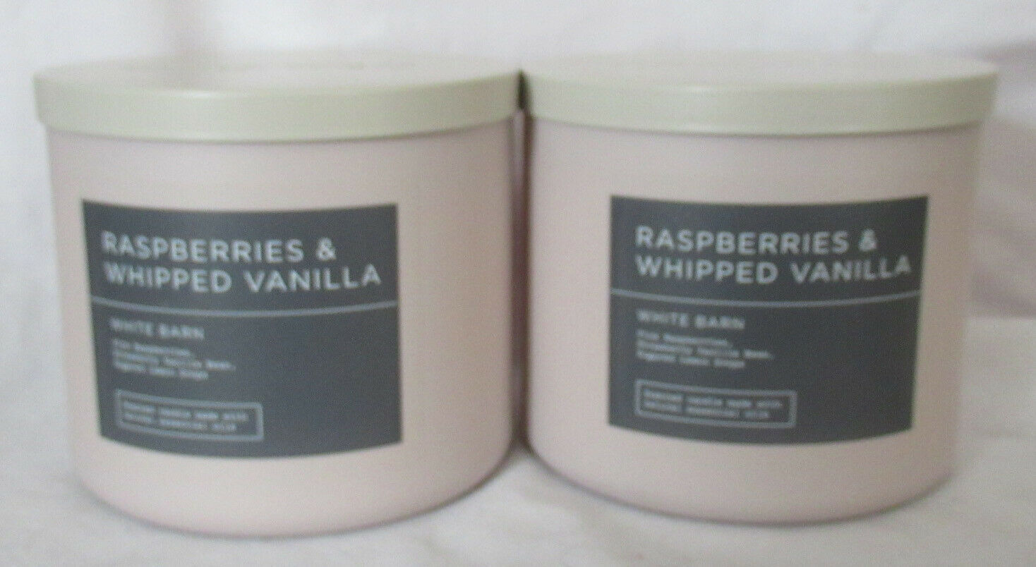 White Barn Bath & Body Works 3-wick Candle Lot 2 RASPBERRIES & WHIPPED VANILLA