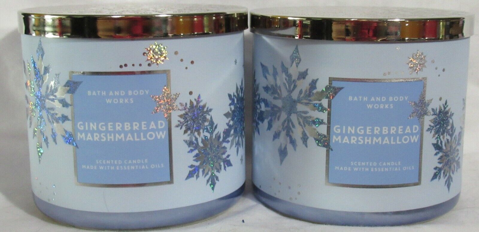 Bath & Body Works 3-wick Scented Candle Lot Set of 2 GINGERBREAD MARSHMALLOW