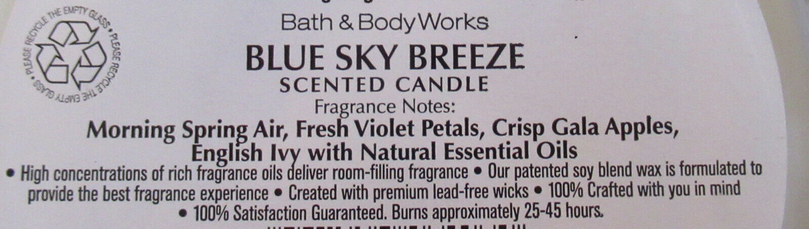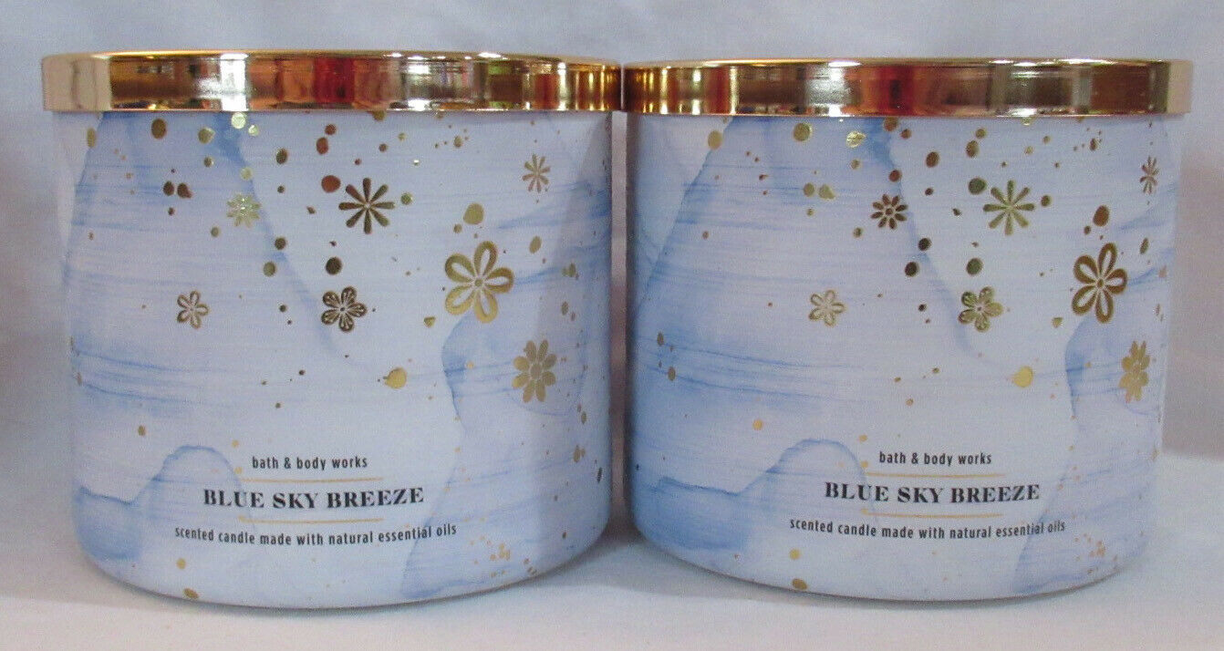 Bath & Body Works 14.5 oz 3-wick Scented Candle Lot Set of 2 BLUE SKY BREEZE