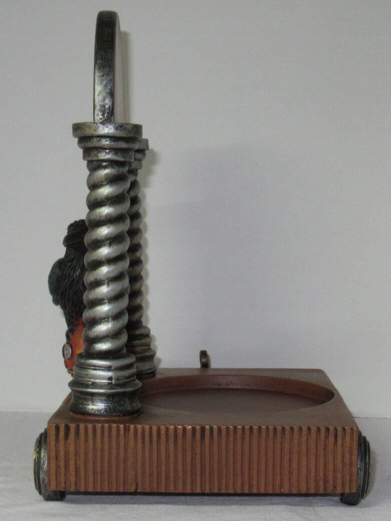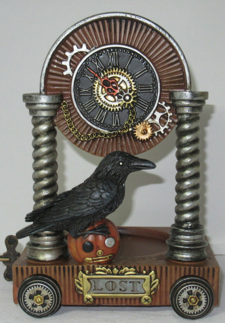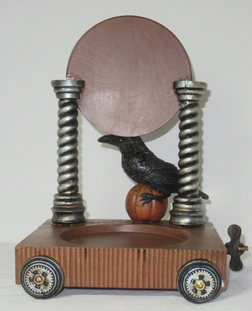 steampunk pedestal candle holder tricked out with gears and a watchful raven. "