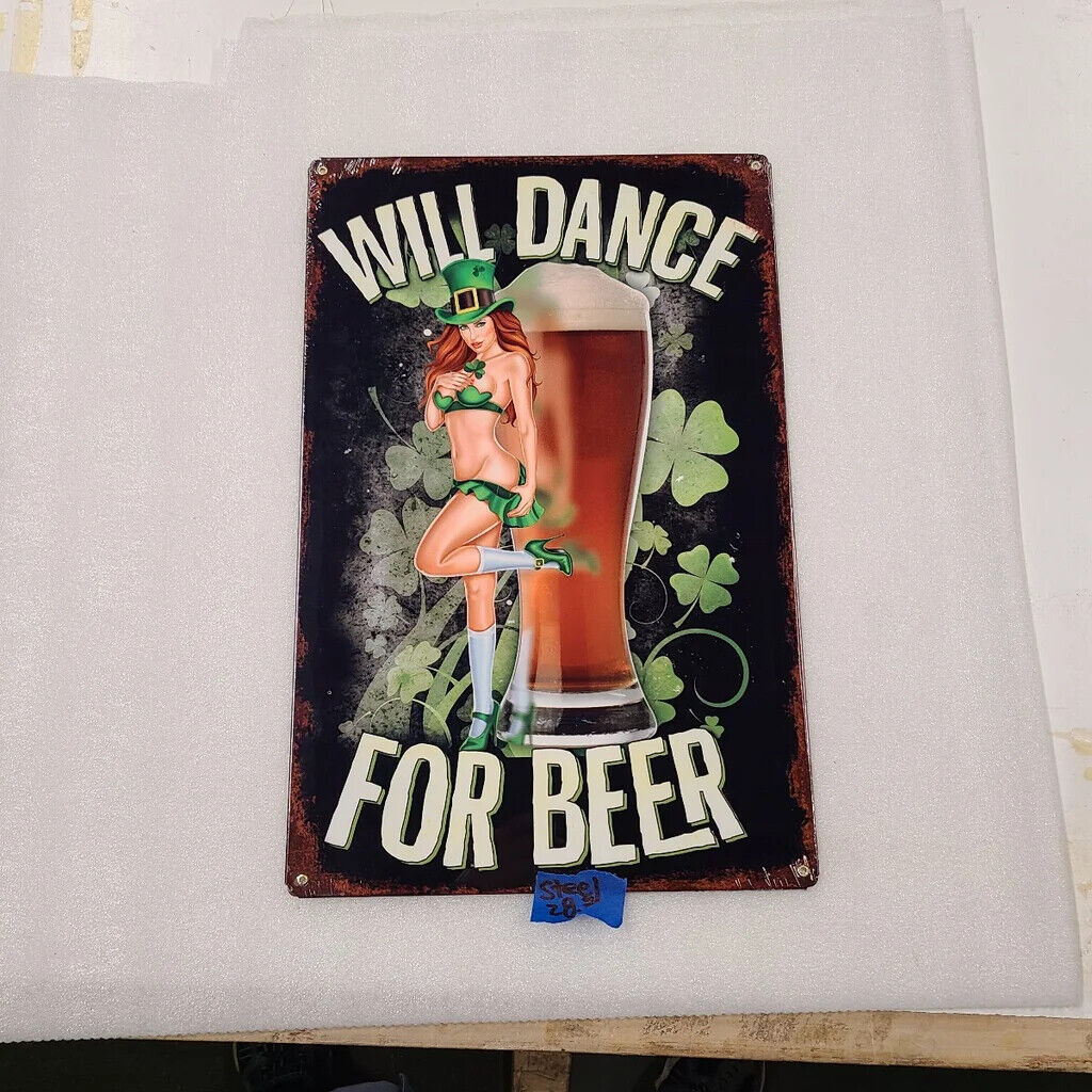 Will dance for beer irish pinup girl faux vintage metal sign this is 18 X 12 inches great for sport bar, den or bedroom kitchen, man cave, kids room, office, school, garage, or hang in house or home, anywhere decor is needed. Great for birthday or Christmas gift.
