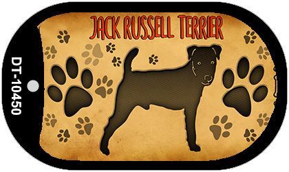Jack Russell Terrier Novelty Metal Dog Tag Necklace DT-10450. 1.5" x 2" dog tag kit including 15" silver chain and silencer. Made of the highest quality aluminum for a weather resistant finish. It is lightweight durable. Proudly made in the USA.