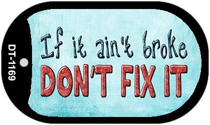 Dont Fix It Novelty Metal Dog Tag Necklace DT-1169. 1.5" x 2" dog tag kit including 15" silver chain and silencer. Made of the highest quality aluminum for a weather resistant finish. It is lightweight durable. Proudly made in the USA.