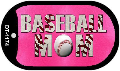 Baseball Mom Novelty Metal Dog Tag Necklace DT-1174. 1.5" x 2" dog tag kit including 15" silver chain and silencer. Made of the highest quality aluminum for a weather resistant finish. It is lightweight durable. Proudly made in the USA.