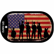 Military Soldiers American Flag Novelty Metal Dog Tag Necklace. 1" x 2" dog tag kit including 15" silver chain and silencer. Made of the highest quality aluminum for a weather resistant finish. It is lightweight durable. Proudly made in the USA.