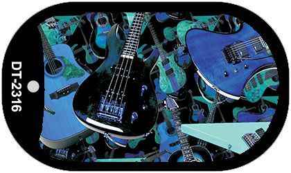 Guitars Blue Novelty Metal Dog Tag Necklace DT-2316. 1" x 2" Novelty Metal Dog Tag Necklace including 15" silver chain and silencer. Made of the highest quality aluminum for a weather resistant finish. It is lightweight durable. Proudly made in the USA.