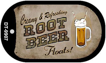 Root Beer Floats Novelty Metal Dog Tag Necklace DT-9907. 1" x 2" Novelty Metal Dog Tag Necklace including 15" silver chain and silencer. Made of the highest quality aluminum for a weather resistant finish. It is lightweight durable. Proudly made in the USA.