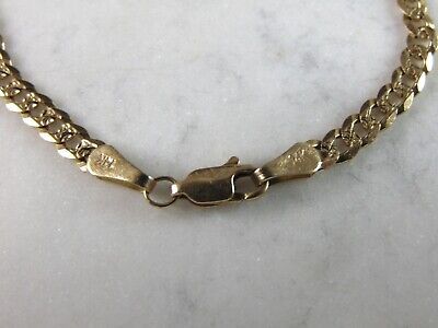 FOR SALE A LOVELY VINTAGE ESTATE 14K YELLOW GOLD CHAIN BRACELET. BRACELET IS 8" LONG FROM THE CLASP BY 1/8" WIDE, AND WEIGHS 5.1g. BRACELET IS MARKED ON THE CLASP. THIS WOULD MAKE A LOVELY GIFT FOR THAT SOMEONE SPECIAL. ANY QUESTIONS, PLEASE ASK. BE SURE TO CHECK OUT SOME OF MY OTHER GREAT ITEMS UP FOR SALE. THANK YOU.