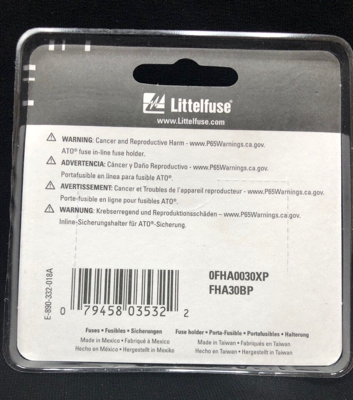LittelFuse ATO In-line Fuse Holder FUSE0FHA0030XP, FHA30BP