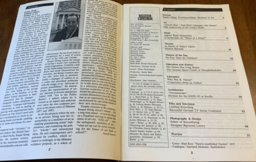 Kultur Chronik 4/1989 English Edition. Ex-lib in good condition. News and views from the Federal Republic of Germany. Feel free to email with questions. I do combine shipping on multiple purchases. Have a great day!