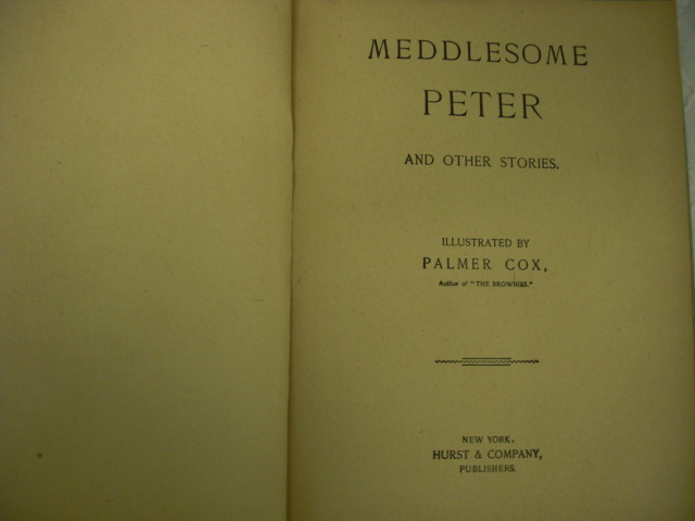 Meddlesome Peter and Other Stories: illustrated by Palmer Cox, Author of “The Brownies”. C. 1897, Published 1902 by Hurst Company, New York.
