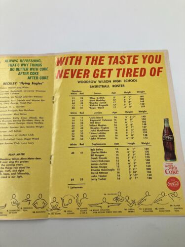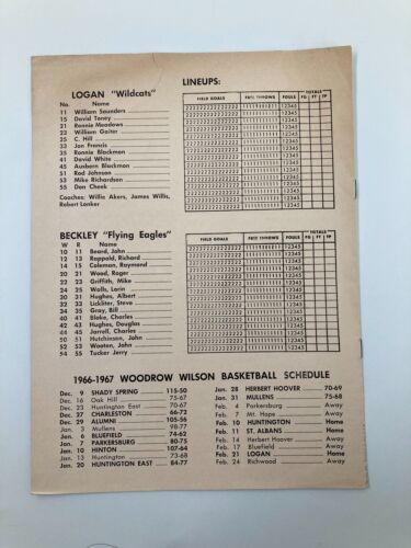 February 21 1967 Beckley Flying Eagles vs Logan Wildcats Basketball Program