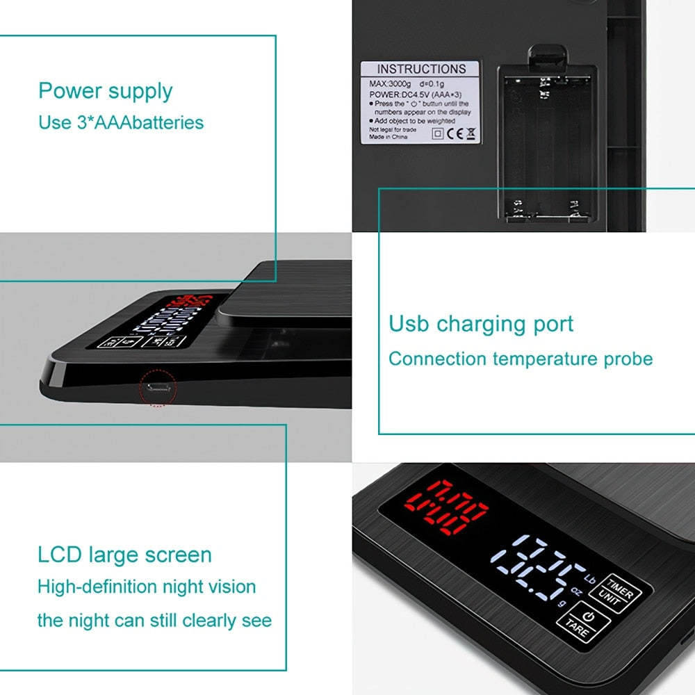 3kg/0.1g 5kg/0.1g Drip Coffee Scale With Timer Portable electronic Digital Kitch