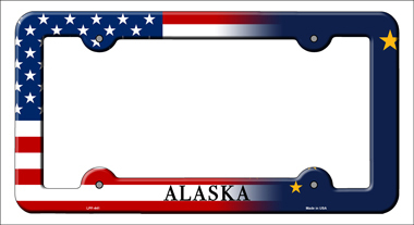 Alaska|American Flag Novelty Metal License Plate Frame LPF-441