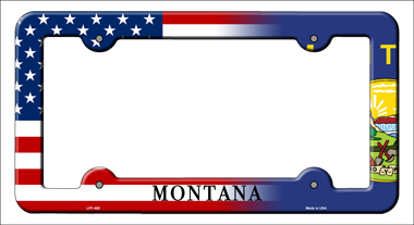 Montana|American Flag Novelty Metal License Plate Frame. Instantly personalize your car with our automotive high gloss molded metal license plate frame. Frames fit standard 6" x 12" license plate tags and are individually shrink-wrapped and proudly made in the USA.