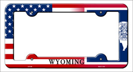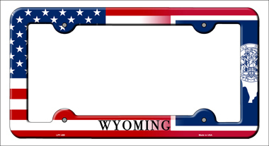 Wyoming|American Flag Novelty Metal License Plate Frame LPF-489