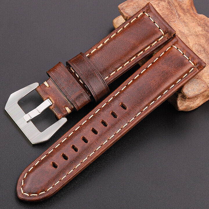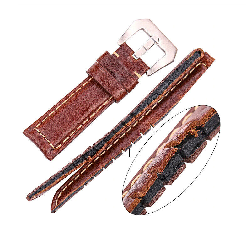 22mm Genuine Cowhide Grain Leather Black/Brown/Red Watch Strap/Watchband/Belt