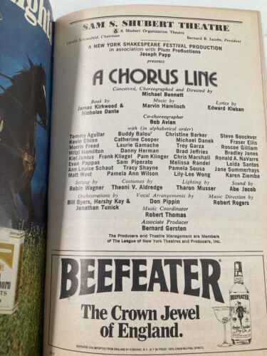 1983 Playbill Sam S. Shubert Theatre A Chorus Line Tommy Aguilar Buddy Balou