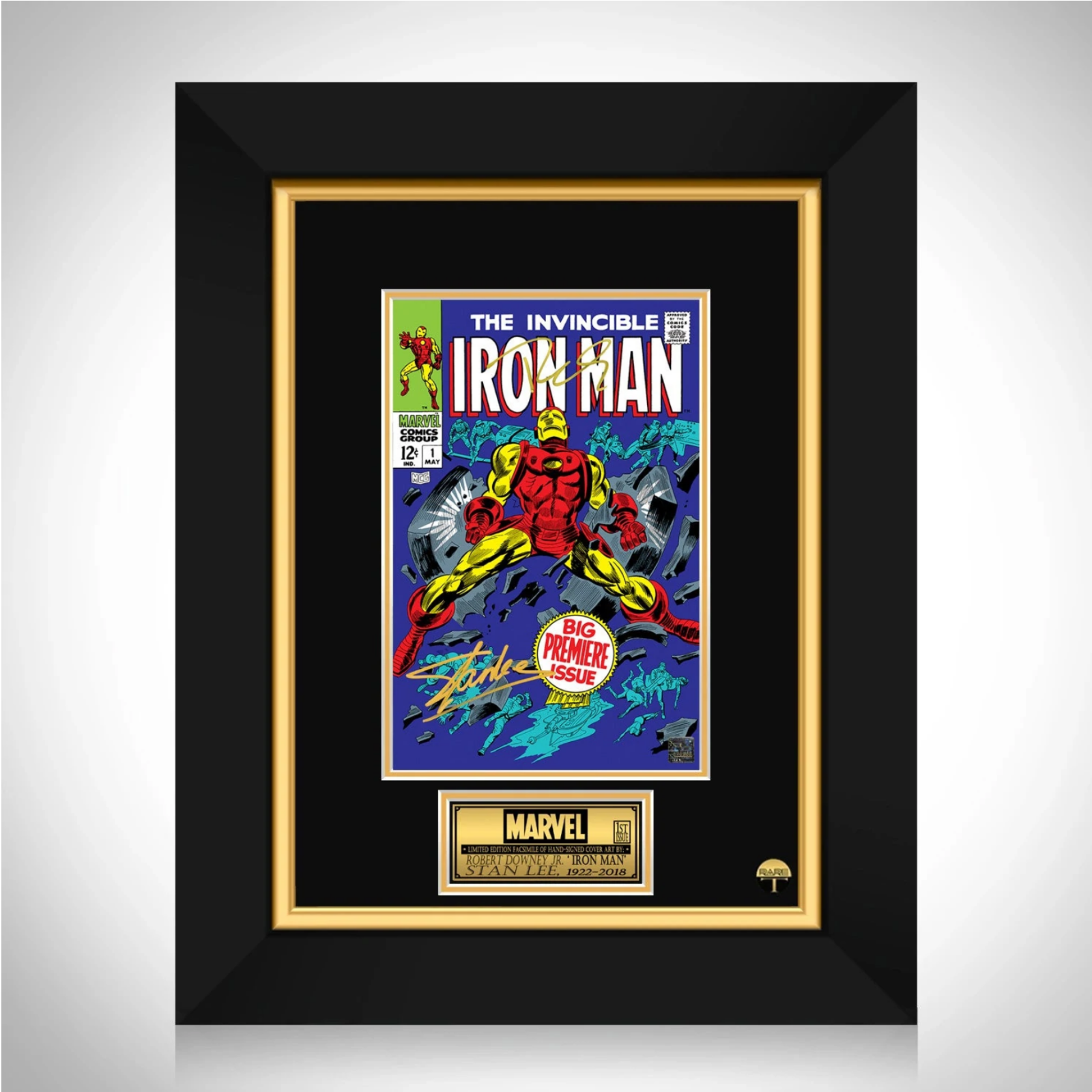 Pay homage to Iron Man, with this gallery-framed, officially licensed, limited edition facsimile of hand-signed Invincible Iron Man #1 Comic Book Cover Art, originally signed by Robert Downey Jr. Marvel Co-Founder former executive producer of all Marvel Movies. the legendary, late great Stan Lee, of which is strictly limited to 100 units Worldwide, and has been approved and numbered accordingly.