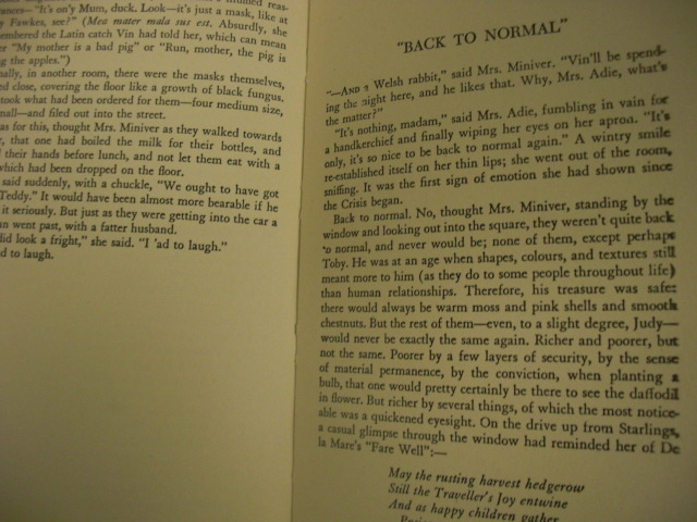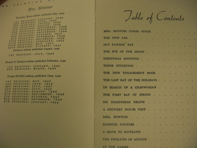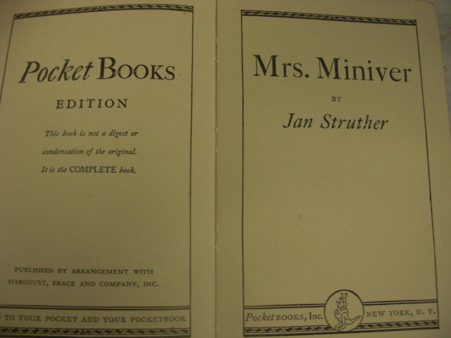Mrs. Miniver: written by Jan Struther, C. 1940, by 9th printing, January, 1943 b
