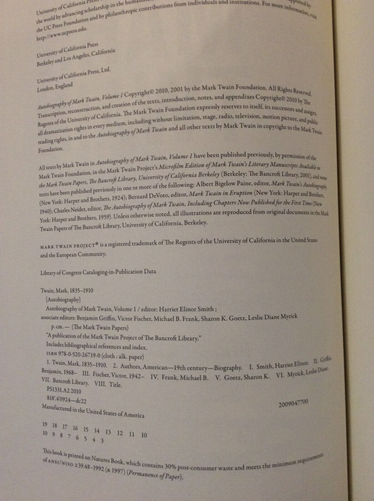 AUTOBIOGRAPHY OF MARK TWAIN by HARRIET ELINOR SMITH VOLUME 1