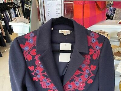 TORY BURCH Navy/Red Floral Button Front Style#31132517 Blazer/Jacket Sz M $450