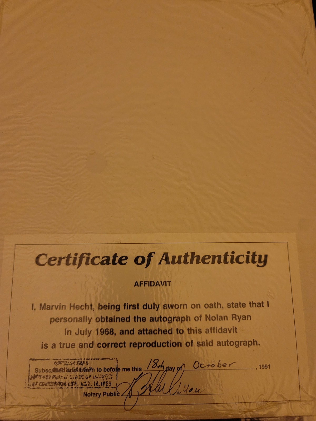 Nolan ryan facsimile autographed picture
